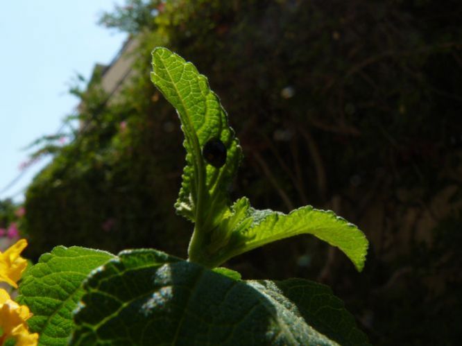 אותו חרק החליט להתחבא מתחת לעלה, ככה שהוא במקום מאוד מוצל יחסית לשאר חלקי התמונה.
