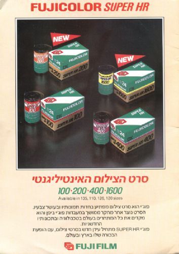 מצאתי מודעת פרסום ישנה, להערכתי מתחילת שנות ה-80', עבור סרטי הצילום של פוג'י. בין היתר, מוצגים לראשונה בפרסומת סרטי ה- ASA 200 ו- ASA 1600.