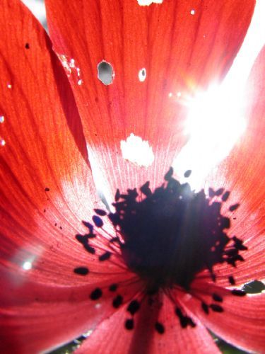שרית העירה שהרקע של העצים הפריע לה בתמונת המחוררת שלי, אז הנה תמונה נוספת, מאותה כלנית מאותו היום בלי העצים ברקע.