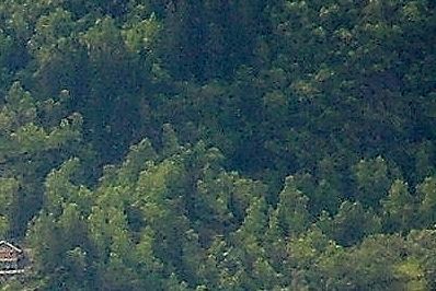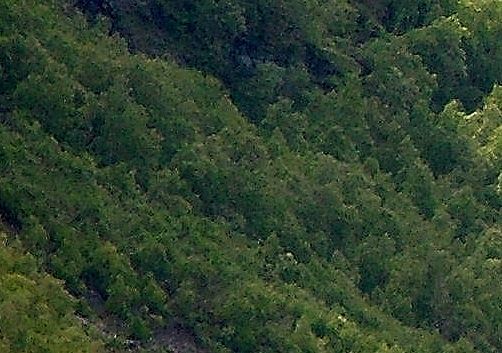 שים לב שהעצים לא נראים כמו עצים, אלא מריחה של ירוק עם נקודות שחורות.