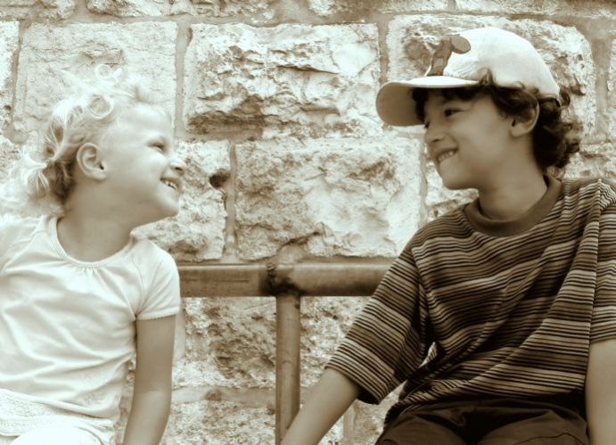 נכון גיל. תודה. אגב, אני לא נוהגת להעלות לכאן דברים אלא אם כן תמונה עם שאלה בצידה. אבל כאן זה מאד הזכיר לי, סתם סיטואציה חמודה ודומה, אותם גילאים, אותו מיקום ומבטים אחד לשנייה... ומכיוון שהועלה שם העניין של מבויים או לא, הבאתי את זו שצולמה כ"פפראצי" ממרחק...(עבר קרופ).
