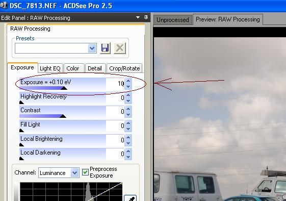 ראה דוגמא (תמונת מסך) מתוכנת ACDSEE, לאחר לחיצה על Raw Processing יש לך אופצ' לשחק עם חשיפה.
