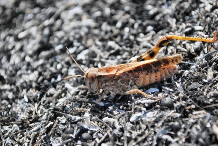 הערה- התמונה הראשונה: החגב הכתמתם- לא עבר עיבוד כלל. הוא צולם על שטח בו היתה שריפה ולכן הרקע בש"ל.