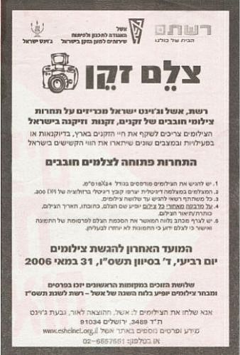 רשת אשל וג'וינט ישראל מכריזים על תחרות צילומי חובבים של זקנים, זקנות וזיקנה בישראל.