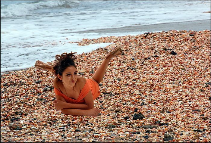 תרשה לי להגיב עם כמה נקודות על הצילום ,ראשית הפרופורציות בין הבחורה לצדפים ממש לא הגיוניות מה שמיידית מדגיש את העובדה שהיא "מודבקת " שם על החוף ולא באמת שם,שנית הבדלי התאורה בין החוף שטוף האור הטיבעי ובחורה שמצולמת בסטודיו די ברורים,נסה להתגבר על הבעיות האלו,מקווה שזה עוזר לך..