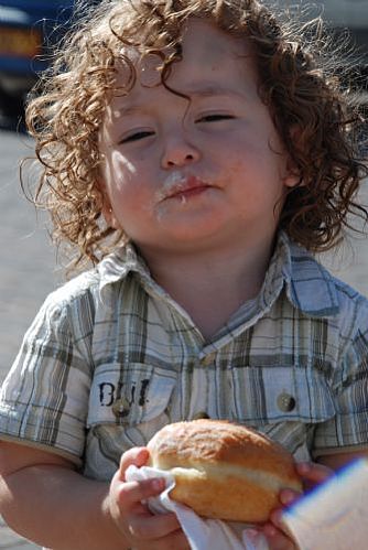 עיניו של הילד סגורות האם צלמת במבזק או באור שמש חזק. או אולי לפי ארשת פניו "די תעזבו אותי מספוגניות..."