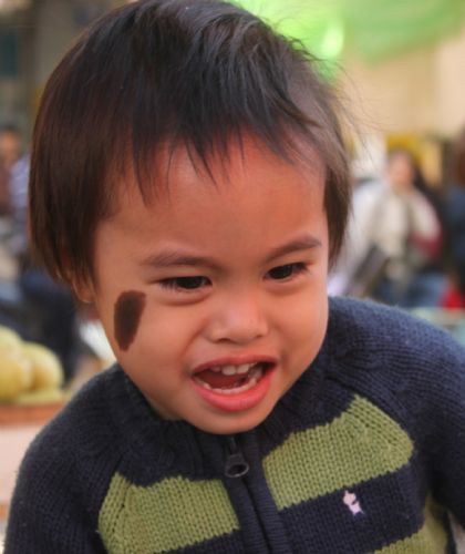 נראה שהפוקוס על החולצה ופחות על הראש של הילד