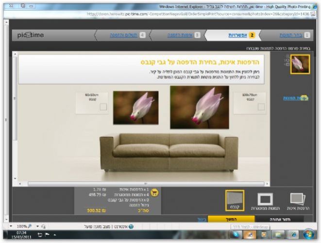 תודה שמואל מצאתי.בכל מקרה ברכות על הזכייה. והאמת זה באמת מטריד שהם מציעים למכירה את התמונות!! מעבר לזה שכתוב למטה באנגלית שהתמונות הן רכושו של דורון הורוביץ ושיא החוצפה שבתמונות אין שום אזכור לשם הצלמים. כאילו כל התמונות של דורון הורוביץ. מה זה החוצפה הזאת???