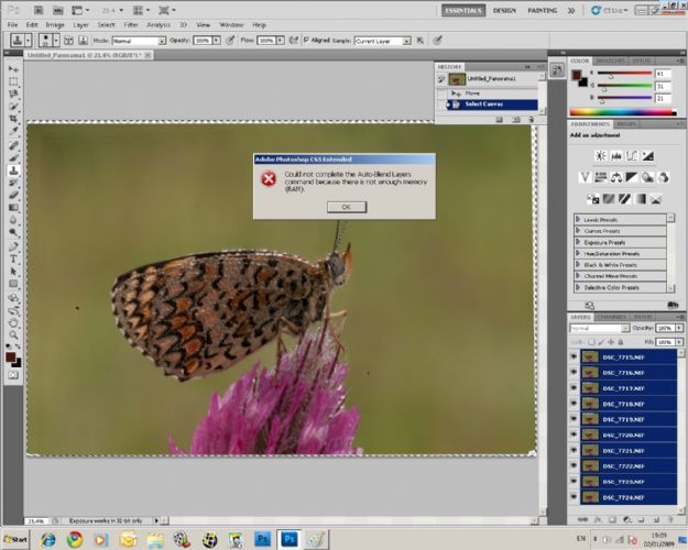 מאז שהתחלתי בטכניקת הערמת פוקוס ופנורמות מאקרו,אני מוצא את עצמי משתמש בפוטושופ בצורה מאומצת ביותר,ואת פוטושופ 32BIT ניצלתי עד תום לדעתי מבחינת יכולות וכנראה שהגיע הזמן להשתדרג.