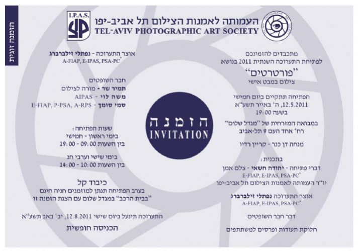 אני מזמין את כל משתתפי האתר לתערוכה השנתית של מועדון הצילום ת"א בנושא "פורטרטים", אליה התקבלו 8 תצלומים שלי.