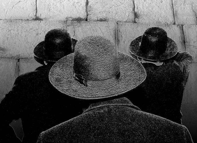 העיבוד כאן הוא בעיקר על גב האנשים והכובעים ופחות על הכותל.