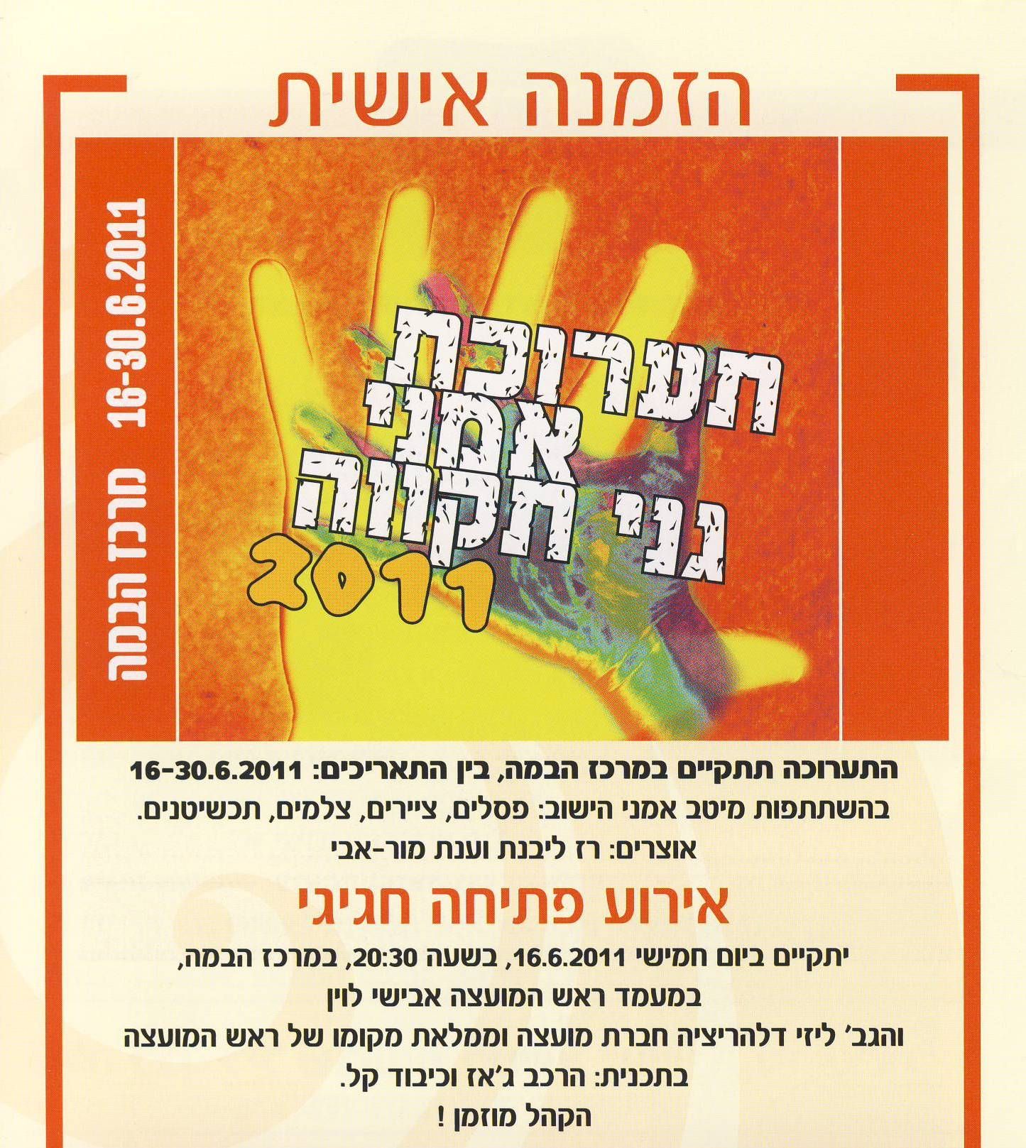 התערוכה "אמנים בגני תקווה - אמנות שאינה תלוייה בדבר" תתקיים בין התאריכים 16.6.11 - 30.6.2011