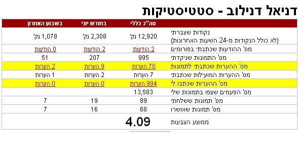 אני מאוד שמח על הנתונים הסטטיסטיים ועל התגובה הכנה שלך. זאת עובדה, הנתונים הם אכן נכונים ואני גם לא מתבייש בהם. כי זה באמת מראה מה חשוב שאני אשפר. חוץ מזה, אני גם מודה שאני חוטה עם כל השאר. אני לא יותר טוב מאחרים ולא באתי להגיד שאני מהווה דוגמא, או שזה לא פייר רק כלפי.