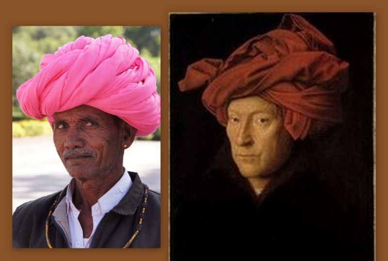 בטיול להודו לפני מספר חודשים צילמתי "איש בטורבן וורוד". לאחרונה ניתקלתי בציור של יאן ואן אייק מ-1433 בשם "איש בטורבן אדום", המוצג בגלריה הלאומית בלונדון. מצ"ב הצילום והציור זה לצד זה. סתם קוריוז.