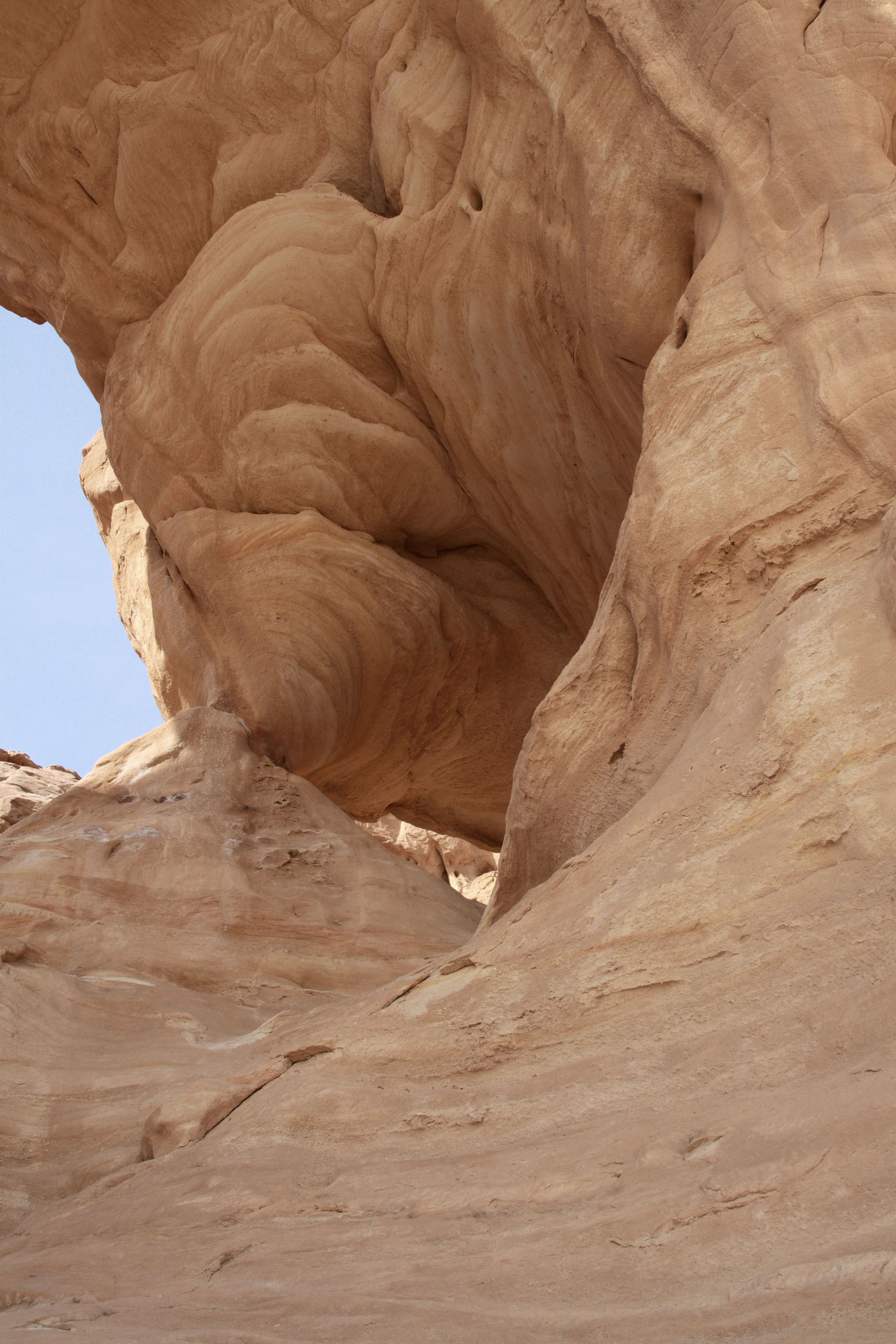 הצבעים בתמונה הזאת אמיתיים יותר. לטעמי, בצילום שכזה עדיף להשאיר את הגוונים הטבעיים ולא לשנות. הגוונים החמים לדעתי לא מיטיבים עם התמונה ונראים לא טבעיים (בגרסה השניה). שווה לשקול אולי ש"ל עם קונטרסט מעט מודגש כדי להבליט את הטקסטורות שבסלע. שימי לב שהתמונה מעט שטוחה וחסרת עומק, חסר בה משהו שימשוך את העין. אולי זוית פחות שגרתית או יותר מהשמים.