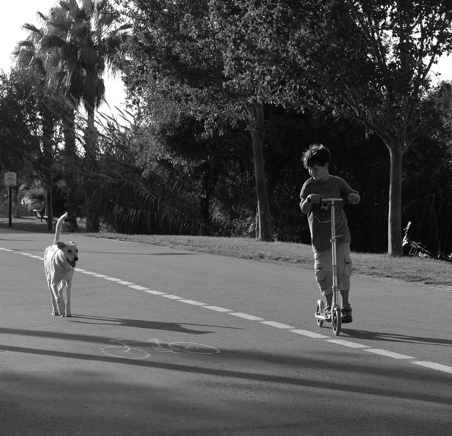 אין לי את הנתונים הטכניים אבל מבחינת קומפוזיציה הייתי קורפ את התמונה מלמעלה ומלמטה כדי להדגיש את הקשר שבין הכלב והילד.
