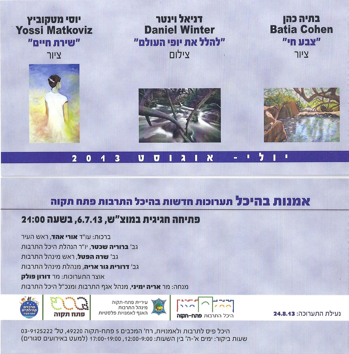 מוצ"ש 6/7/2013 בשעה 21:00 היכל התרבות פ"ת רחוב המכבים 5