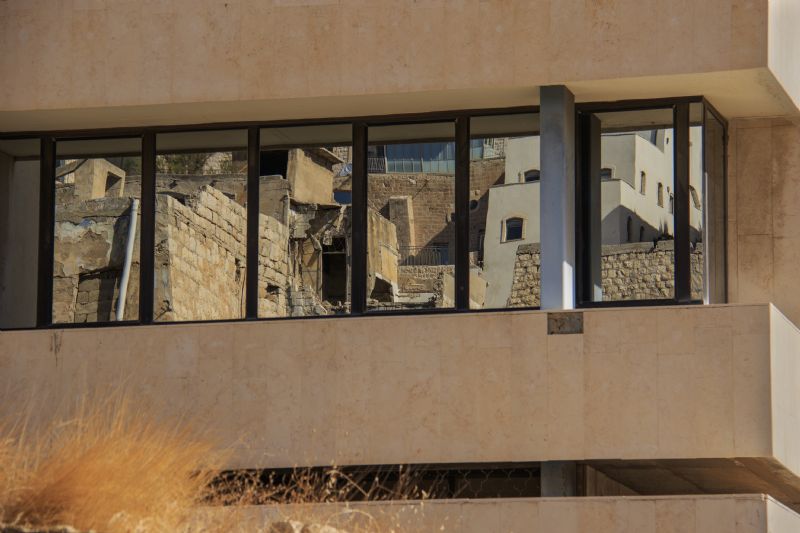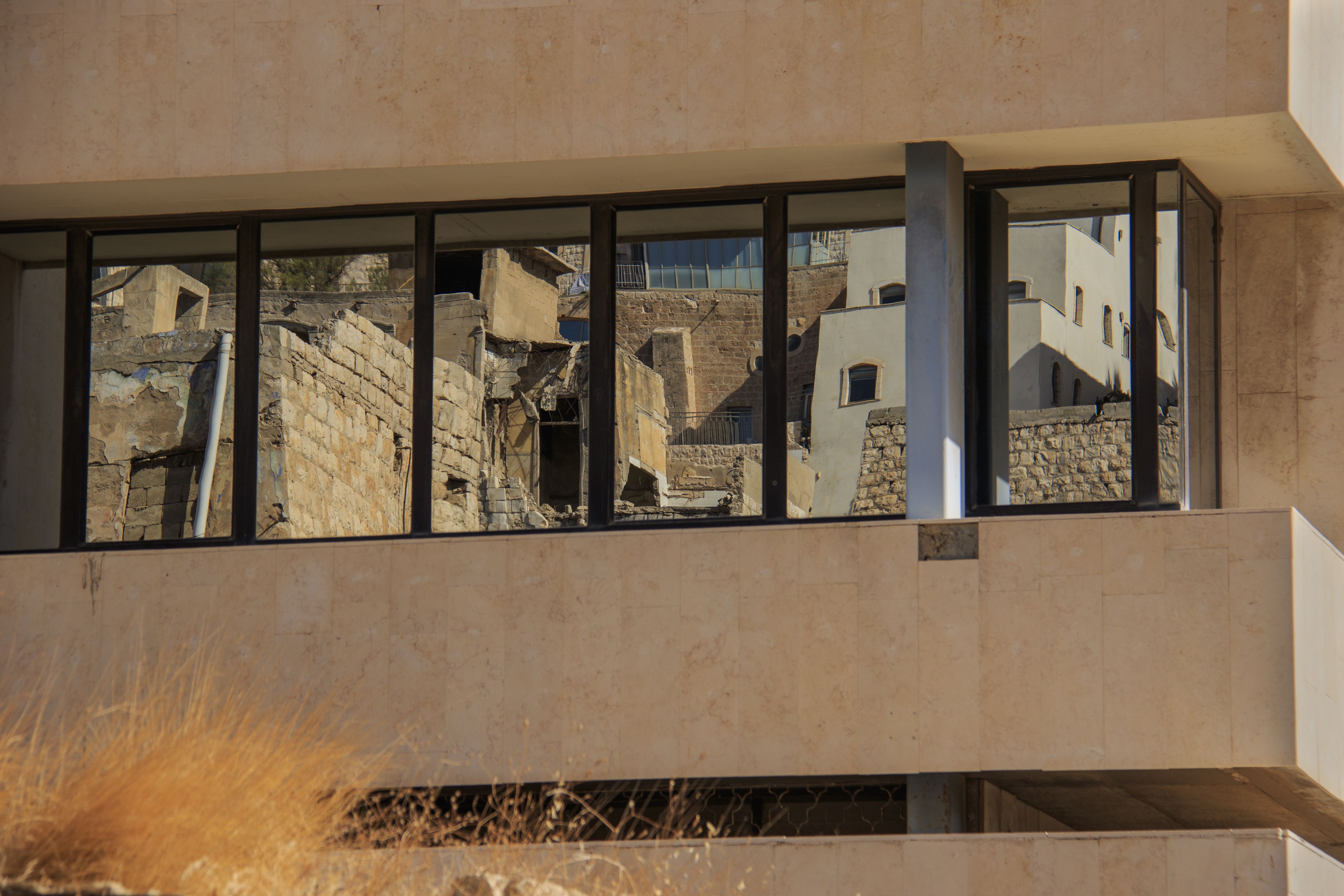 אם רצית להעביר בתמונה את העתיק משתקף בחלונות חדשים, אז אין מקום להדגיש את העזובה כי היא לא קשורה לתמונה.