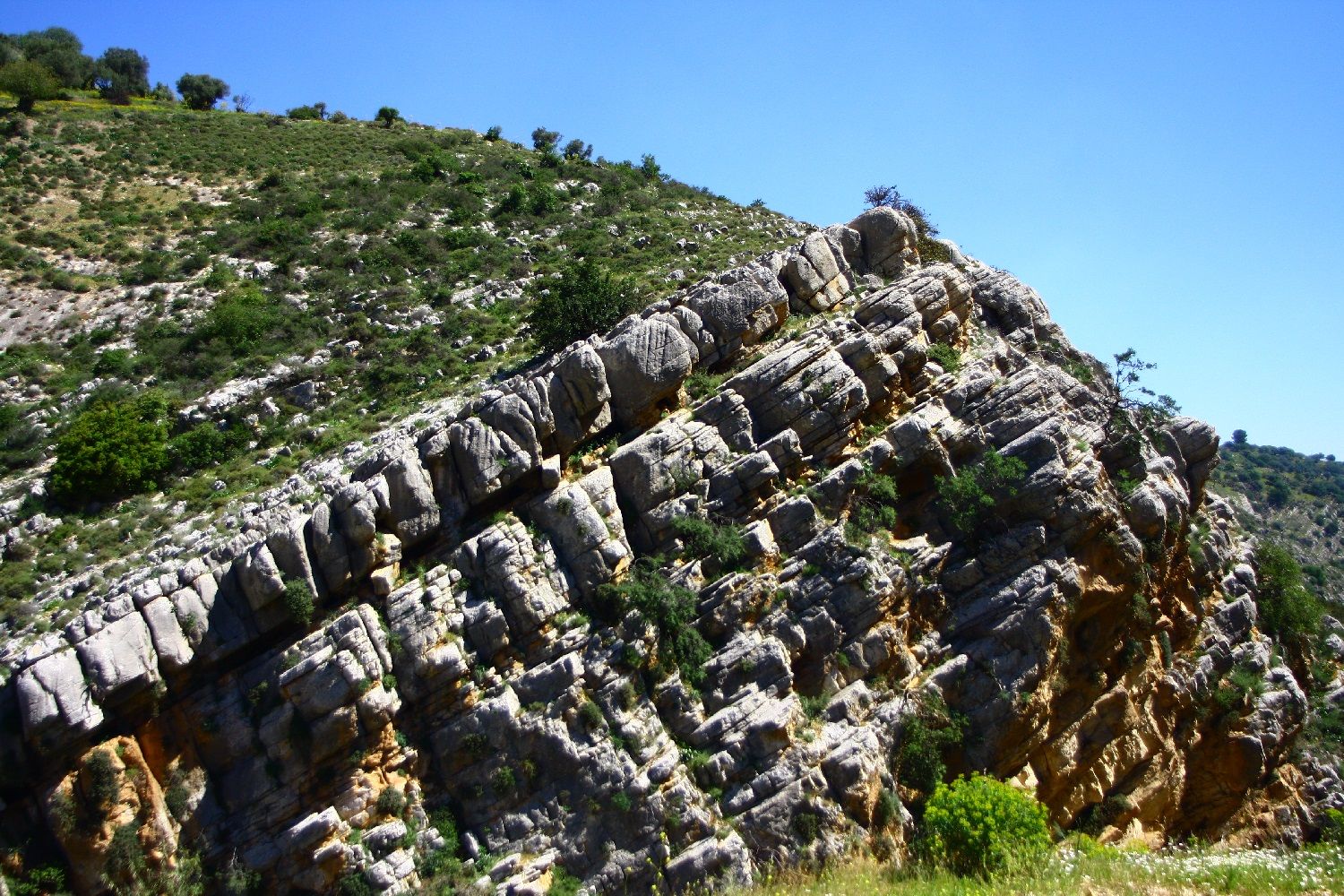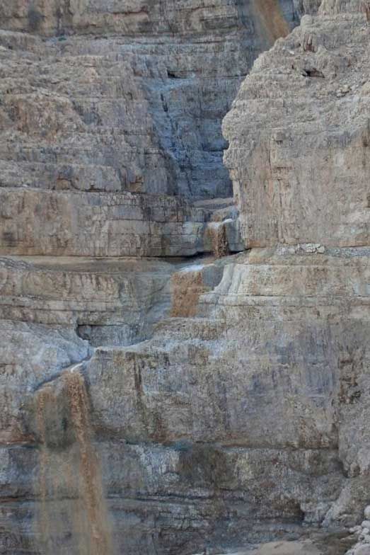 באשר לקווים על המצוקים, ראיתי לא פעם קווים אלכסוניים כתוצאת תזוזה של שכבות טקטוניות