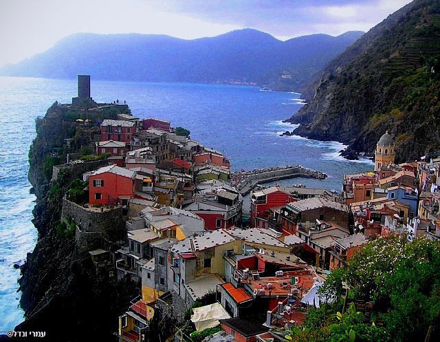 העיבוד שלי יותר בהיר ולכן מראה את הפרטים במצוק שמתחת לבתים (שאצלך הוא שחור) והירוק של השיחים חי יותר. בעיבוד שלך הכחול של הים עמוק יותר, אבל הוא גם נרעה יותר מגורען - ואולי זה בגלל הדחיסה. שני העיבודים לא מצליחים להתגבר על האובך במרחק ועל השמים האפורים. מענין באיזה פרמטרים השתמשת - הניחוש שלי saturation ~50 brightness~-10 ?