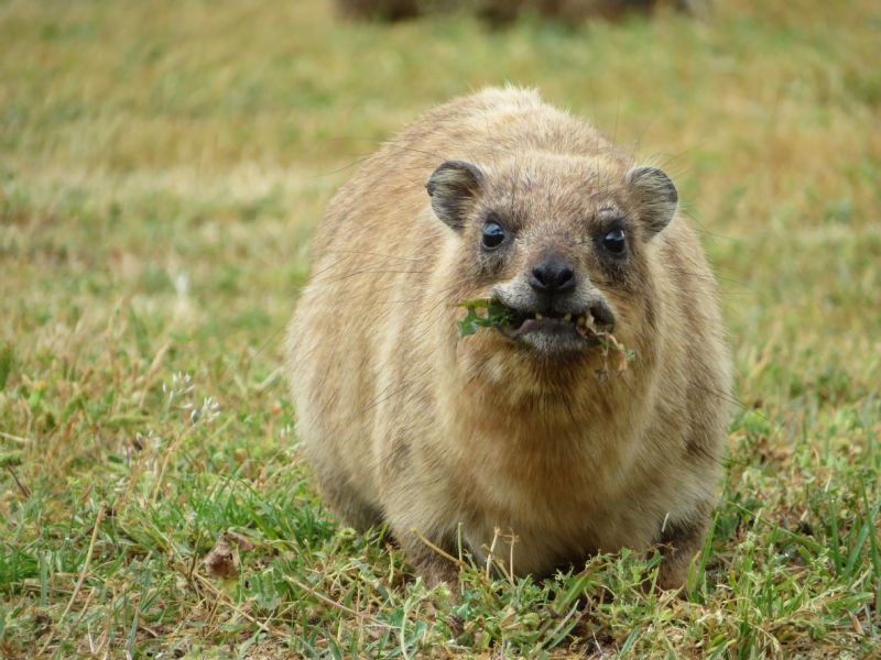 זו תמונה של שפן סלע אוכל ארוחת בוקר.