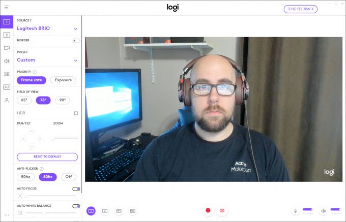 לשם הגברת ההבנה אני מצרף תמונה של חלון תוכנת מצלמת Logitech Brio זו תמונה מהאינטרנט, לי עדיין את את המצלמה הזו, אני רק אוסף אינפורמציה לפני הקנייה