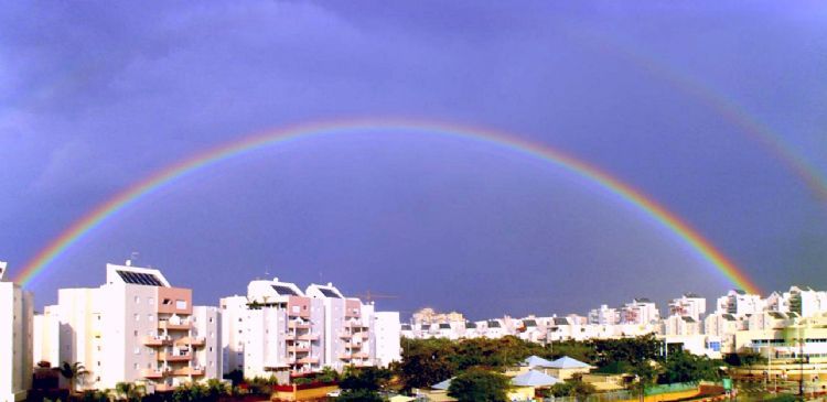 אני מצלמת הרבה שמיים ואת התמונה הזו צילמתי מביתי. זו תופעה נדירה של קשת כפולה הנקראת supernumerary שלא קורית הרבה בארץ.