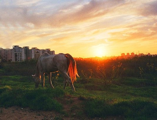 החיתוך של ויקטור משדרג את התמונה. הסוס הבודד יוצר מין אווירה מלנכולית כזו על רקע הבניינים שלא מסתדרת עם הנוף המדהים של השמיים. אני אוהבת אתה הניגוד הזה.