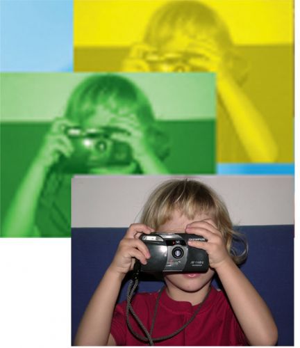 לגרור את התמונה של הילד לתוך התמונה החדשה ולהכפיל ל 3 שכבות (crtl+J) שכבה אחת משאירים כמו המקור ועל שתי השכבות הנותרות מפעילים photo filter שנמצא תחת image>adjustment בצבעים הרצויים