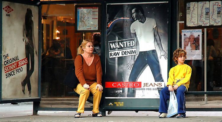 הנוכחות של האנשים בתחנה משתלבת עם נוכחות הדמויות בפרסומות, וביחד עם האנשים שנמצאים בחנות מאחורי התחנה. מעניין, תלת שכבתי.