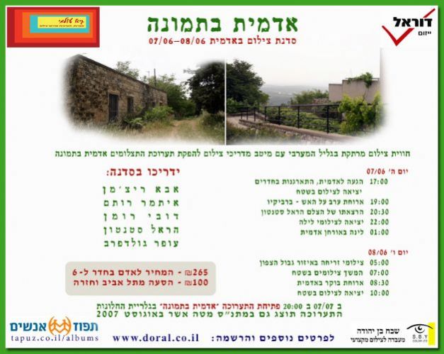 מצורפת הזמנה עם לו"ז לסדנה ואינפורמציה נוספת וכן לינקים לתצלומיהם המרהיבים של ה"מדריכלמים" J המשתתפים:
