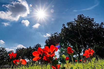 reddish red anemones