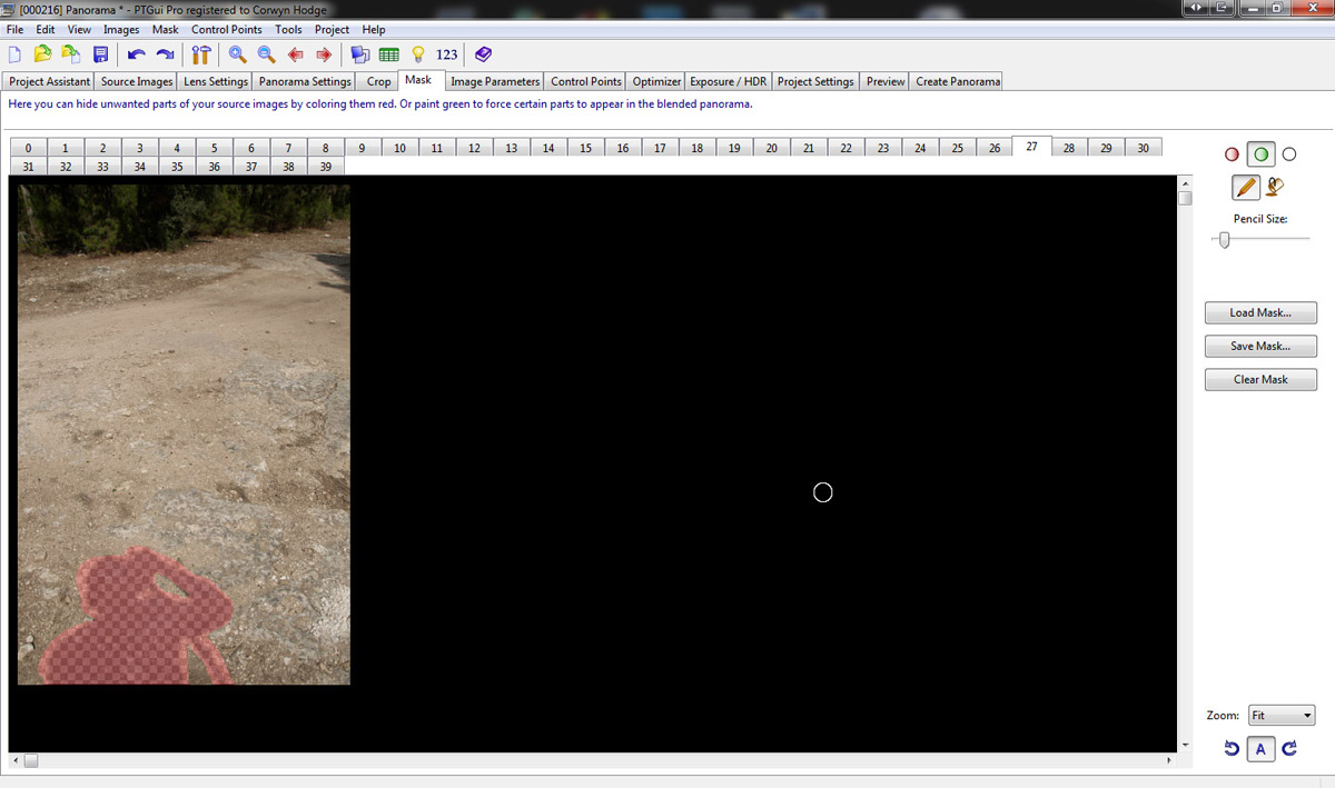 עוד תכונה מאוד טובה ושימושית של פי.טי. גואי היא היכולת לסמן איזורים בכל תמונה אותם אנחנו רוצים שתוכנה תציג או תסתיר (או בקיצור מסכות) זה כלי נורא שימושי שעוזר לנו להעלים את רגלי החצובה או לגרום לציפור שבמקרה הייתה בפריים להופיע בתמונה.