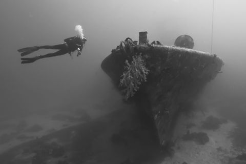 · צילומי ספינות טבועות – לרוב נרצה לתפוס כמה שיותר מהספינה ולכן הצילום יתבצע בעזרת עדשות רחבות. כאשר מצלמים עצמים גדולים מתחת למים לרוב אין משמעות לצבעים כיוון שהמבזקים לא מסוגלים להאיר אובייקטים גדולים, ולכן גם כיוון שנרצה להוסיף דרמאטיות נהוג להפוך תמונות של ספינות טבועות לשחור לבן.