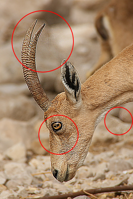 חידוד יתר (אזורים בעיתיים במיוחד מוקפים בעיגול אדום):